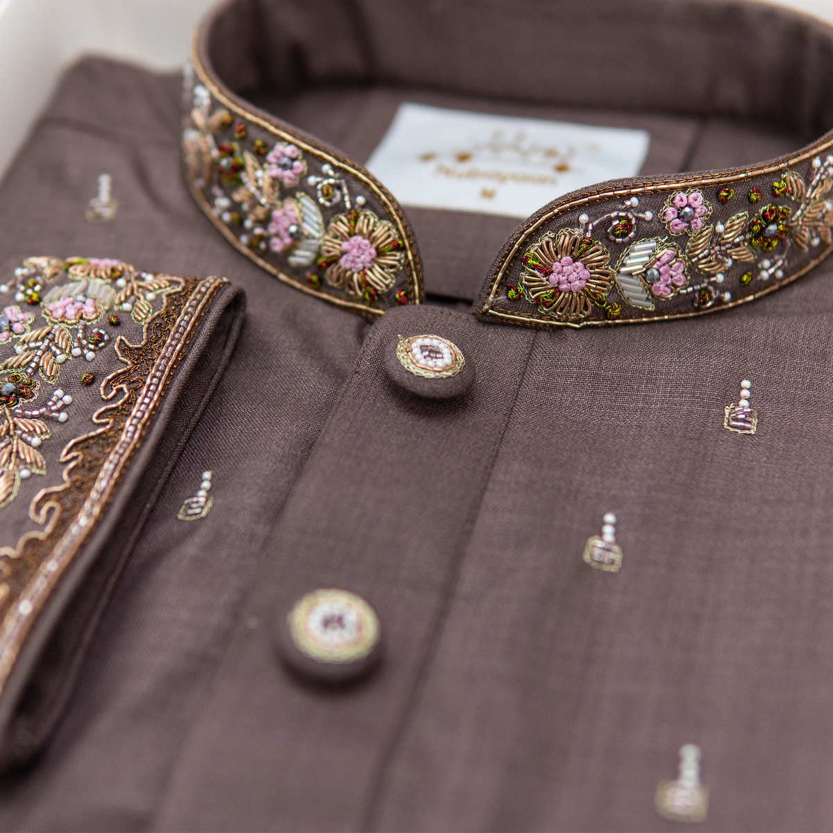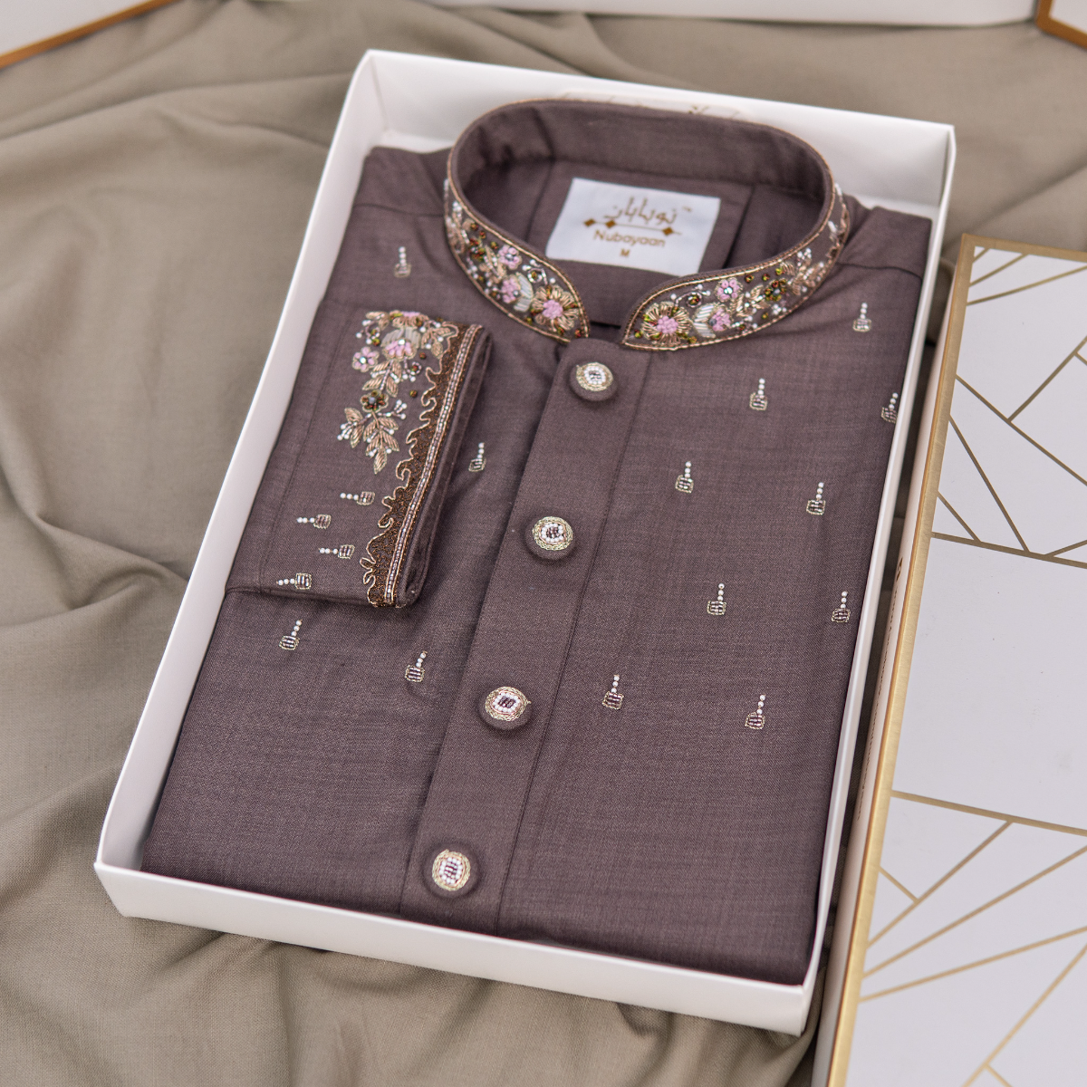 Designed for comfort and style, it offers a relaxed fit that moves with you — perfect for celebrations, weddings, Eid gatherings, or cultural events. The fine zardozi work enhances the neckline, Cuffs and front placket, making it a standout piece without being overly flashy.