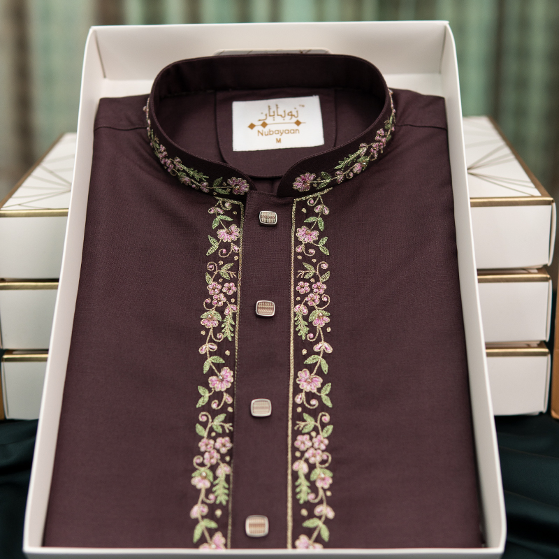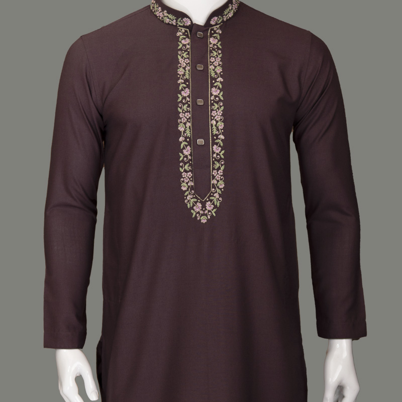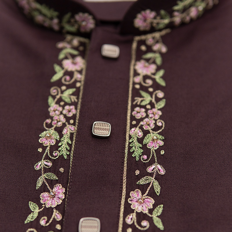 Experience the perfect blend of luxury and comfort with our comfort-fit Plum karchupi Panjabi, exquisitely tailored from premium cotton for a subtly textured and refined look. The relaxed silhouette drapes with effortless elegance, offering breathability and ease without sacrificing style. Featuring intricate zardozi embroidery woven with shimmering metallic threads, this piece pays homage to traditional artistry while embracing modern sophistication. Ideal for festive occasions, cultural gatherings, or weddings, it’s a timeless expression of grandeur where heritage and contemporary charm intertwine.