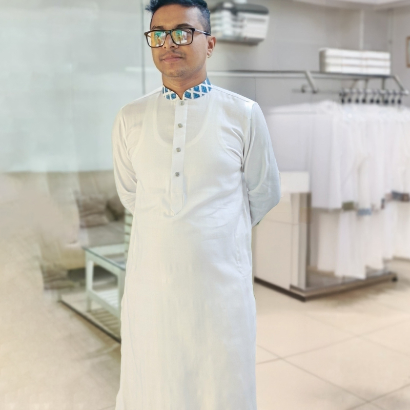 Elevate your traditional wardrobe with this elegant White Pearl Blue Solid Panjabi, crafted for a refined and timeless look. The soft pearl-blue tone brings a subtle sophistication, making it perfect for both festive occasions and casual gatherings.
